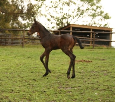 A precious dark bay Trakehner filly born 14th December 2010. Angelina’s dam is the special Trakehner mare Excelsior Lutzeena (Lizzie) by Lutz, Australian Dressage Champion, out of Excelsior Azel by Benito who was an FEI show jumping stallion and also performed up to FEI level in dressage. This mare is aging now and we are thrilled she has produced us a gorgeous filly. Lizzie had a dressage career at medium level when a paddock injury saw it cut short. Angelina’s sire is APH Spiegel also an FEI level dressage stallion who himself was sired by Kassiber, a very talented eventing stallion imported from Germany.