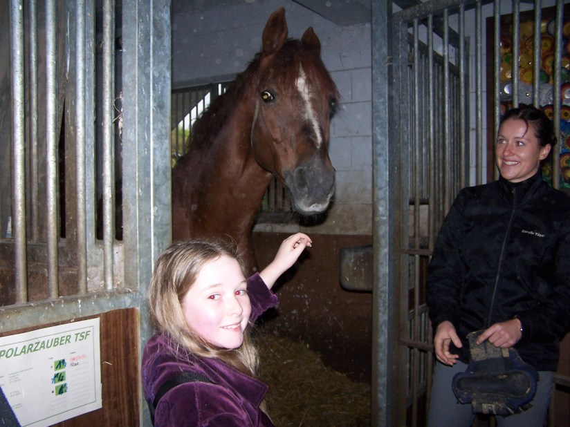 We were greeted by Dorothee and the stable manager Carolin who was the English speaking person at the stud. We saw Dorothee ride Polarzauber first. He was a nice mover and she rode some lovely dressage moves on him. Next, we were very privileged to see Dorothee ride Grand prix movements on Kaiserkult(by VanDeyk). This had been arranged for us by Maren and it certainly was a lovely sight. He was very supple, quiet and rhythmic. They definitely had a partnership and you could see the connection between the two of them. In Germany, he is a bit of a superstar having won everything on his way to Grand Prix and at still only 10 years of age the future ahead of him will certainly be impressive. His movements were just superb, as good as any Grand Prix I have seen in Australia. We then went for a tour of the stables and looked at some youngsters and also met the legend, Van Deyk. We had a lovely time here and saw the creation of lovely dressage through a magnificent horse, a good rider and a wonderful relationship that has formed between the two.